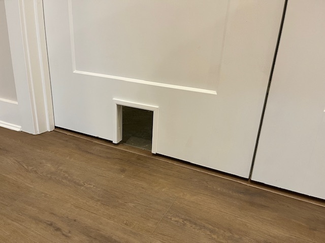A guest bedroom with custom built-in bunk beds makes overnight stays easy for visiting family and friends, while a dedicated exercise room with an adjoining bathroom and steam shower adds a wellness retreat right at home. Even the cats were considered in the design, with a custom cut-out door providing easy access to the unfinished storage area, another thoughtful detail that makes this home truly livable.